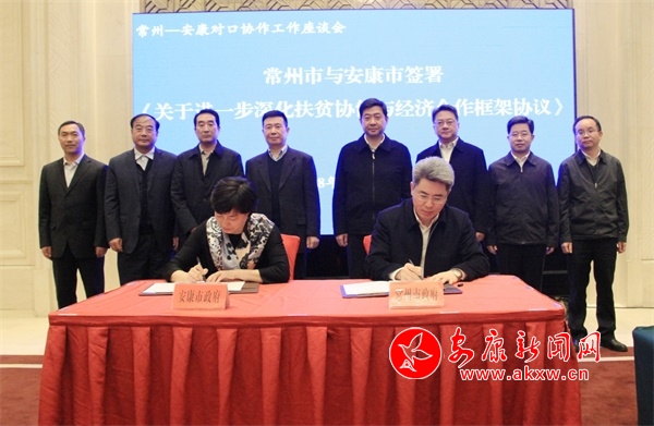 安康新聞網(wǎng)訊(記者 黃慧慧)12月18日至20日,省人大常委會(huì)副主任、市委書記郭青率我市黨政代表團(tuán)赴江蘇省常州市考察學(xué)習(xí),深入推進(jìn)對(duì)口扶貧協(xié)作。19日下午,兩市舉行對(duì)口扶貧協(xié)作座談會(huì),郭青、常州市委書記汪泉出席會(huì)議并講話,常州市委常委、市委秘書長(zhǎng)方國強(qiáng)主持會(huì)議。安康市委常委、常務(wù)副市長(zhǎng)趙璟,常州市副市長(zhǎng)梁一波分別介紹兩市經(jīng)濟(jì)社會(huì)發(fā)展和扶貧協(xié)作情況。會(huì)上,雙方簽署《關(guān)于進(jìn)一步加強(qiáng)扶貧協(xié)作和經(jīng)濟(jì)合作框架協(xié)議》《大健康產(chǎn)業(yè)項(xiàng)目合作框架協(xié)議》。