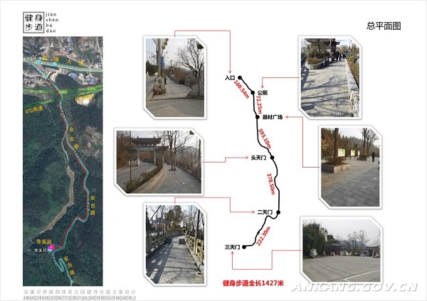 項目實施地點為安康市香溪洞風(fēng)景區(qū)原有健身步道(水泥路面),北起香溪文化廣場南側(cè),南至香溪洞景區(qū)停車場,全長約1.5公里,寬度介于2.47—3.72米之間。