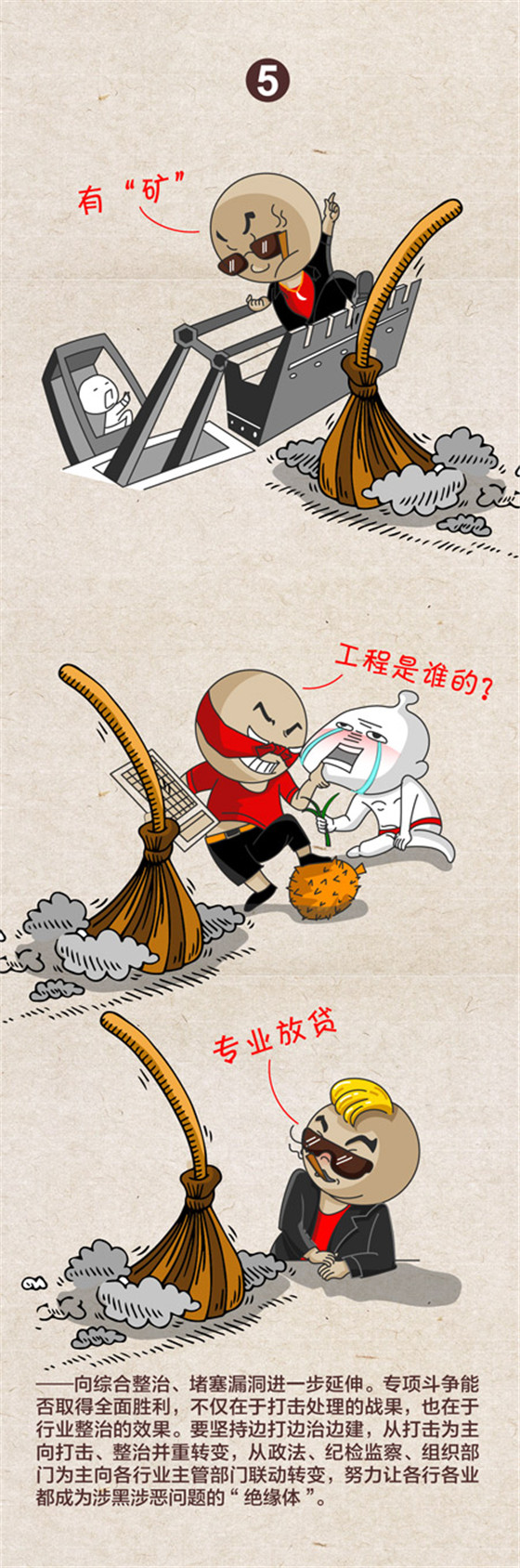 中央紀委國家監委網站近日發布一組題為《2019掃黑除惡“六個延伸”》的漫畫,對2019年掃黑除惡專項斗爭提出向偵破大案、打財斷血進一步延伸,向網絡空間、新興領域進一步延伸,向深挖幕后、打傘破網進一步延伸,向依法懲治、快訴快判進一步延伸,向綜合整治、堵塞漏洞進一步延伸,向固本強基、鏟除土壤進一步延伸等六大方向。