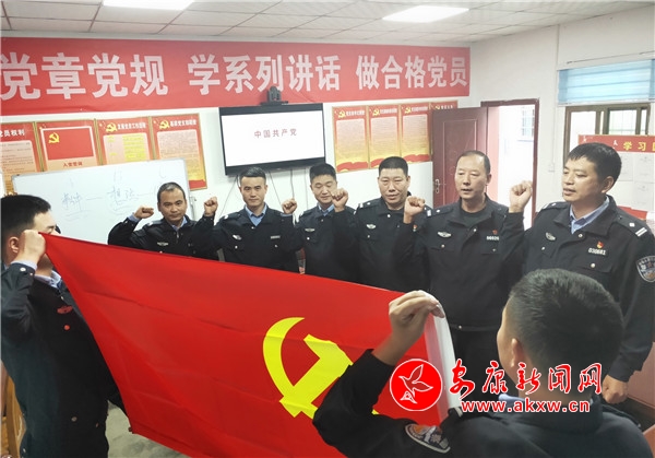 活動中,支部書記為全體黨員講了生動的一堂黨課,集體重溫了入黨誓詞,一起觀看了警示教育片《警鐘》。全體黨員干部面對鮮紅的黨旗莊嚴宣誓,重溫入黨誓詞,接受理想信念教育,心靈得到了又一次凈化。最后通過相互交流學習心得、討論各自思想感受,紛紛表示,要珍惜先輩們負重前行換來的和諧社會,努力用自己的實際行動扎實做好本職工作,以高度的政治責任感,積極為示范區人民群眾創造安全、暢通、有序的道路交通環境。