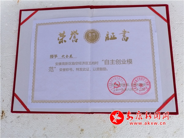 筆者從陳斌口中得知,2019年6月,代全花分別被安康高新區和五檔村黨支部、村委會授予“自強標兵”和“自主創業模范”榮譽稱號,去年一家成功實現了脫貧。?