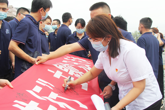 隨后現(xiàn)場職工還在無償獻(xiàn)血?jiǎng)訂T橫幅上集體簽名留念。