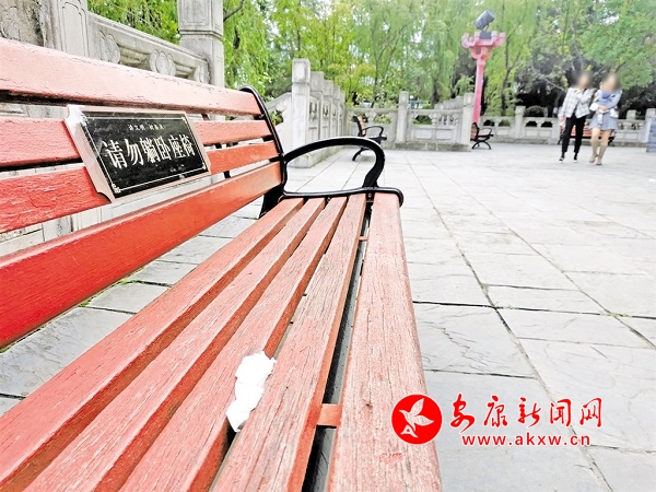 游人在景區長凳上丟下的垃圾