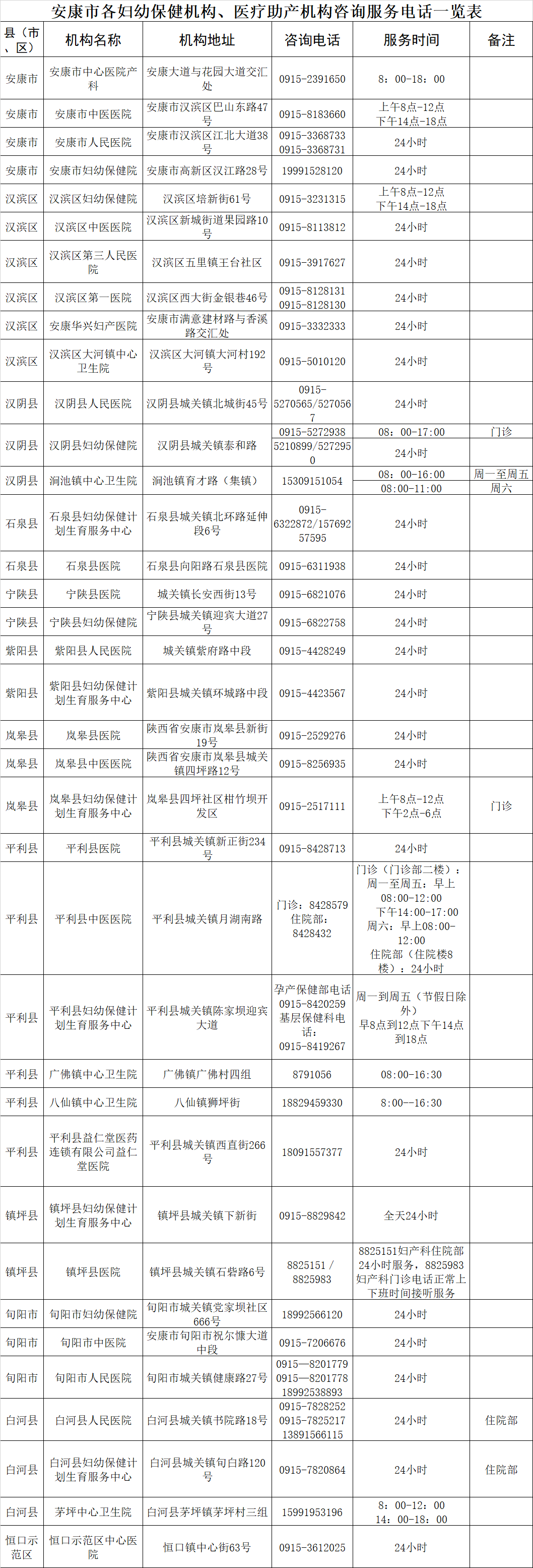 附件:安康市各婦幼保健機構、醫療助產機構咨詢服務電話一覽表