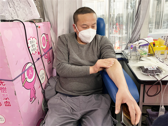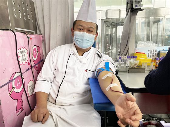 酒店廚師長段斌已經是第五次進行無償獻血了,他說,希望大家在身體條件允許的情況下,捐獻熱血、溫暖他人。