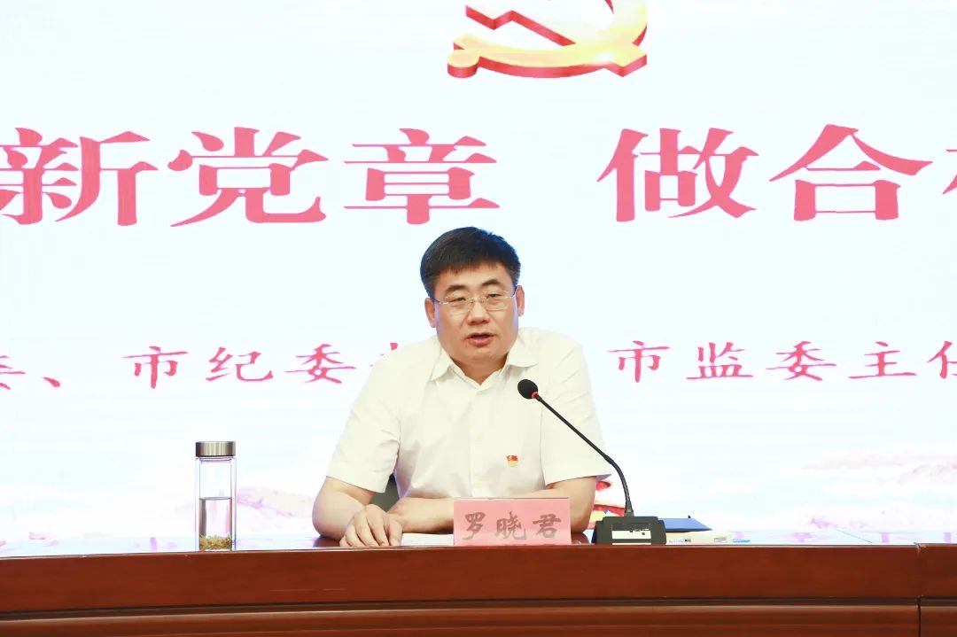 按照全市紀檢監察干部隊伍整頓工作安排,6月27日,市委常委、市紀委書記、監委主任羅曉君以《學好新黨章 做合格黨員》為題,為市紀委監委機關、派駐機構紀檢監察干部和巡察機構干部講專題黨課。省紀委監委第七督導組到會指導。