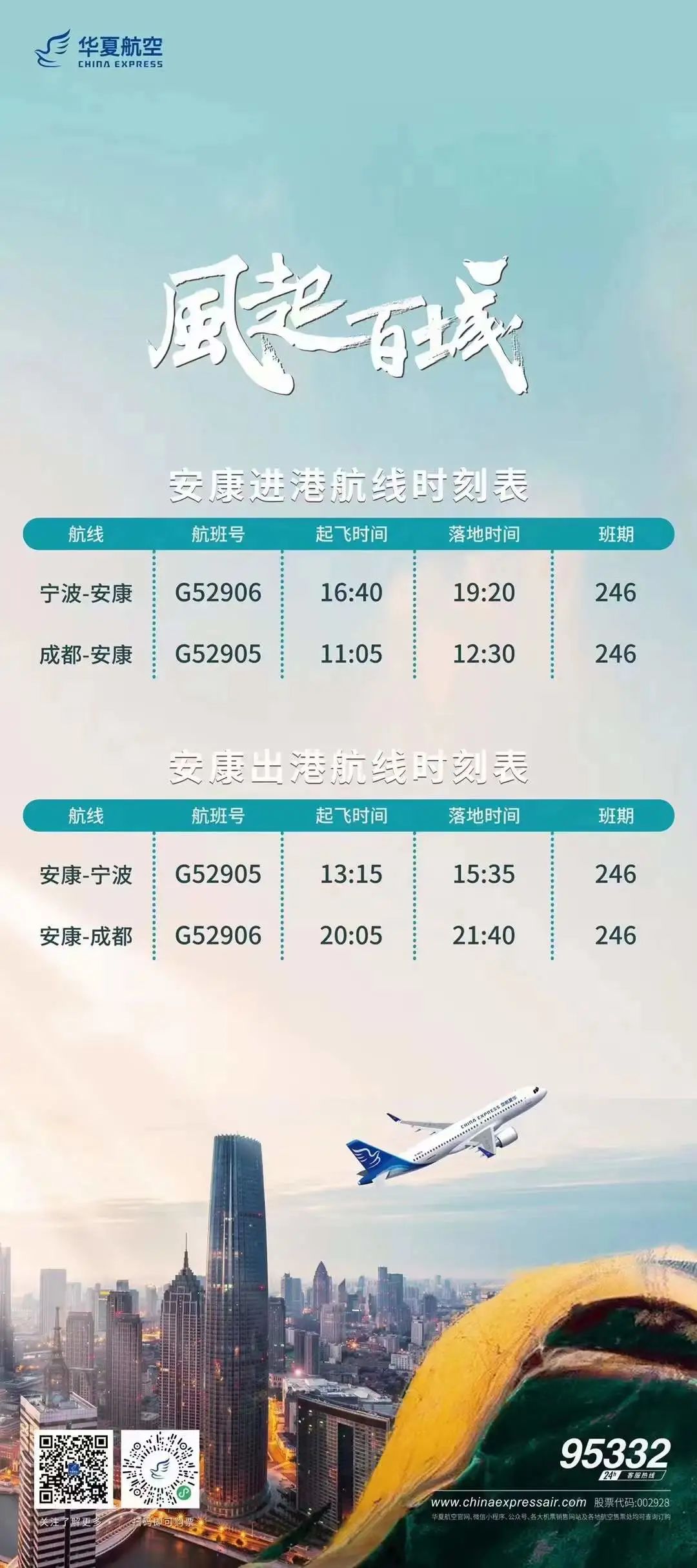 8月2日,據安康富強機場消息,8月15日起,安康將開通成都-安康-寧波航線,具體航班信息如下圖: