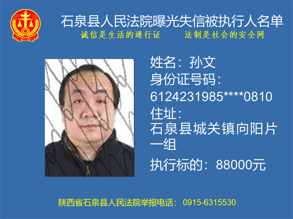 曝光失信 | 石泉縣人民法院曝光失信被執行人名單(2023年第六期)