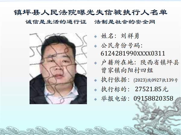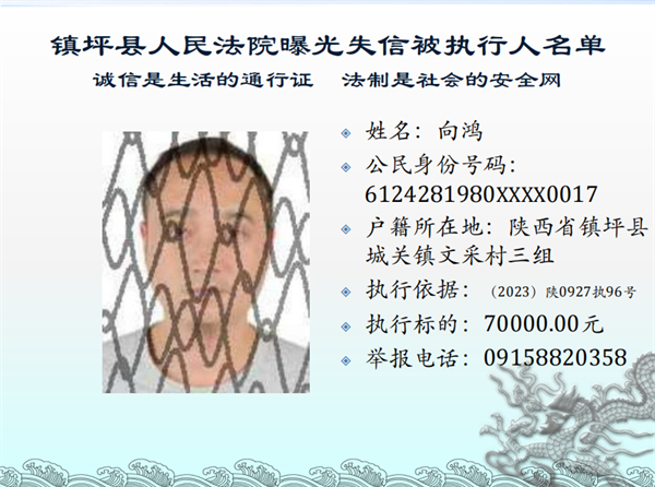 曝光失信 | 鎮坪法院2023年第三期失信人員名單公布