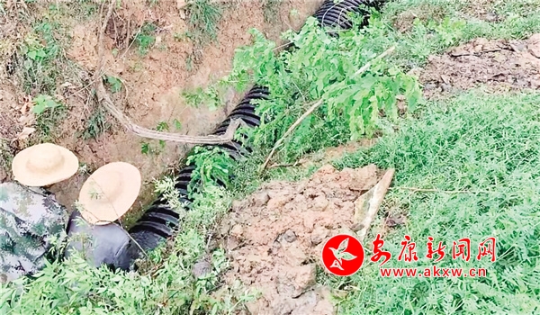 去年五月,正值農忙插秧時節,恒口示范區雙椿村村民李傳多在準備去田里做插秧前的準備工作時發現,自家和3家同村人位于郭墳院的十幾畝農田的灌溉渠因之前強降雨滑坡,導致灌溉渠垮塌已無法供水。而這里比較偏僻,除耕種打理和秋收時節很少有人來,因此一直未被發現。