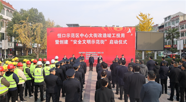 11月22日,恒口示范區隆重舉行中心大街改造竣工投用暨“創建安全文明示范街”啟動儀式。