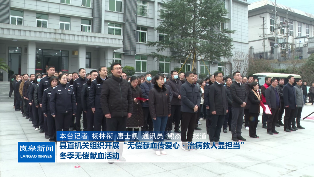 12月28日,嵐皋縣直機關(guān)組織的“無償獻(xiàn)血傳愛心·治病救人顯擔(dān)當(dāng)”冬季無償獻(xiàn)血活動在縣委、縣政府機關(guān)大院內(nèi)開展。縣委常委、宣傳部部長歐陽周菲宣布活動啟動;副縣長伍玉蘭主持活動;部分在嵐縣級領(lǐng)導(dǎo)參加獻(xiàn)血活動。?