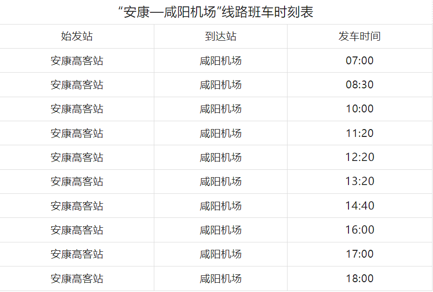 “安康—咸陽機(jī)場”客運(yùn)線路發(fā)車時間調(diào)整