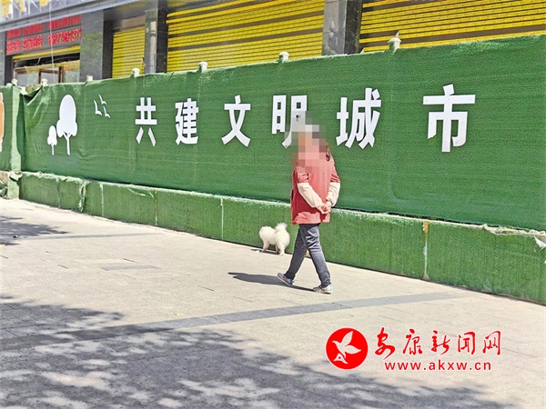 3月22日,有市民在安康中心城區大橋路人行道上不牽繩遛狗。