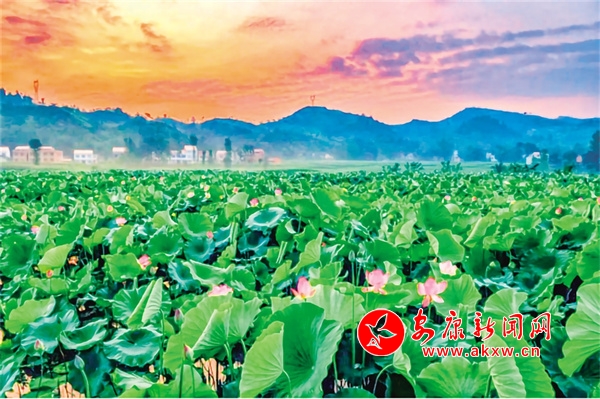 小路兩旁,那肥嘟嘟、圓滾滾的荷葉手挽著手、肩并著肩,將清凌凌的荷塘遮得密不透風。又因昨日一場透墑雨的滋潤,荷葉碧綠通透,如晶瑩的翡翠,嫵媚中透著可愛。緊緊依偎在荷葉旁邊的荷花更是千姿百態,它們如剛剛出浴的仙子,飄然在荷塘中。微風拂過,荷葉翻起陣陣綠浪,層層疊疊,滾向山邊。荷花隨風輕盈起舞,讓人沉醉其中。