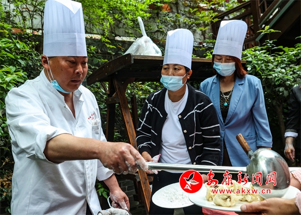 但隨著時代的發展,人們消費理念的更新,能制作傳統白河“三點水”宴席的人越來越少,偌大一個縣,找不出幾個能夠獨當一面制作傳統宴席白河“三點水”的廚師。所以他毅然決定辭去高薪的主廚工作,奔走于鄉村,上門做家政服務,在實地操作技藝中傳幫帶一批會制作白河“三點水”宴席的鄉廚。