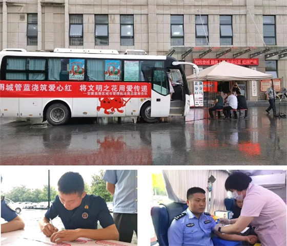 7月19日,安康市中心血站聯合高新區城市管理執法局、 市公安局高新分局、高新區消防救援大隊開展無償獻血活動。