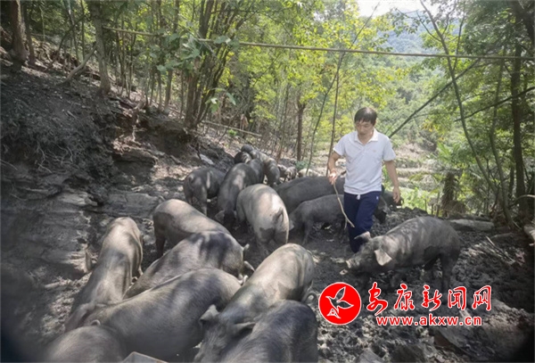 仲夏時節,旬陽市麻坪鎮老莊溝村,大山里清靜涼爽。隨著一陣音樂響起,樹林間瞬間躁動起來,一群黑豬哼哧哼哧地鉆了出來。“一放音樂,它們就知道飯點兒到了。”“豬館兒”王興隆說,“喂飽了就回去拱個坑睡覺,這群黑豬從小就生活在樹林里,我對這種利用自然資源的純天然養殖方式是很有信心的。”