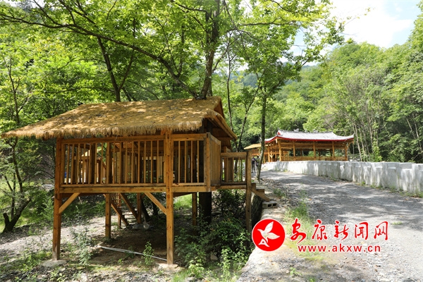 8月7日,記者在鎮坪縣曙鎮聯合村大圣寨康養旅游度假區看到,28戶原住居民的房屋已統一改建完成,一個頗具地方風味的康養區已見雛形。