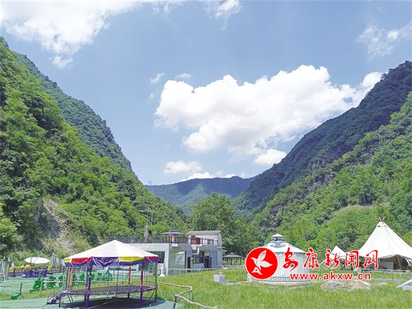 立秋這天,為了避暑,我和友人結伴,頂著38度的高溫從安康城區出發,經平鎮高速公路,一個半小時到達干洲河上游的五眼泉露營基地,剛好正午12點半,而這里的室外溫度只有22度。打開車門,山風一吹,一身暑氣頓時退去,隨之而來的是山風中的樹木清香、山花濃香,以及河風吹來的溫潤之感。