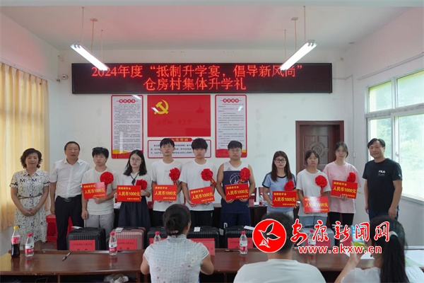 自2017年白河縣首場集體升學禮在倉房村順利舉辦以來,倉房堅持村連續(xù)七年為準大學生們舉辦集體升學禮儀式。8月9日,倉房村攜手市中醫(yī)醫(yī)院和縣殘聯在全鎮(zhèn)率先開展集體升學禮儀式,在儀式上市中醫(yī)醫(yī)院和縣殘聯分別為準大學生們送上助學金和行李箱,并勉勵他們求學路上要堅定理想,培養(yǎng)良好的人生觀、價值觀,勤奮學習練就過硬本領,回報家鄉(xiāng)。
