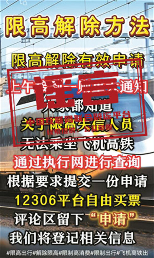 謠言:被限制高消費人員不用還款也能買機票、高鐵票?