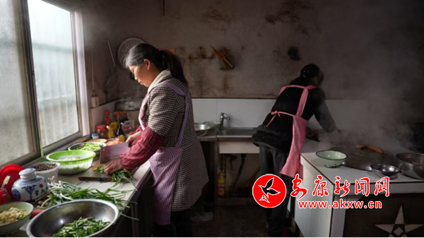 平梁鎮蔡家河村村民牛少漢一家一大早就開始忙碌起來,備好柴火,在院子里擺上大木桶,燒上滿滿幾鍋開水,殺豬師傅手法嫻熟,大家齊心協力,燙豬毛、分割豬肉,忙得不亦樂乎。