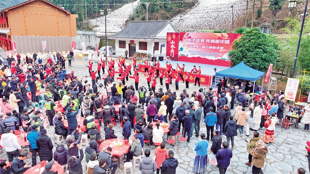 據了解,為了準備此次庖湯宴,去年12月底,石門鎮總投資120余萬元開始進行橫溪古鎮舊房改造提升項目,著力打造“古鎮庖湯宴”品牌。經過項目改造,古鎮完成全面升級。不僅如此,石門鎮政府還不斷通過“線上+線下”的宣傳方式,提升當地旅游業影響力,積極制作旅游宣傳視頻,此次活動帶動引流2000人次。(柯明宇 攝)
