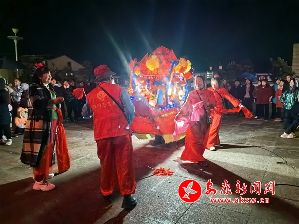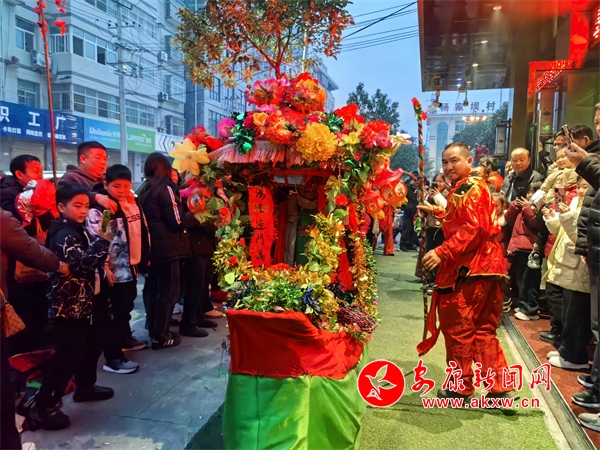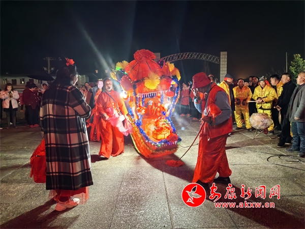在位于漢陰縣平梁鎮的興隆佳苑社區,春節期間,小區里處處洋溢著節日氛圍。夜幕降臨,社區廣場響起陣陣鑼鼓聲,耍花船表演正式開始。只見表演者雙手提船、配合默契,船體隨著“波浪”旋轉、顛簸,身穿喜慶艷麗的服裝、頭戴五彩頭飾的表演人員個個精神抖擻,一邊前行,一邊唱著漢陰本地的花鼓戲,祈求來年風調雨順、福壽安康。翻飛的彩扇、華麗的彩船,精心編排、詼諧幽默的表演,為社區群眾呈現了一場精彩的視覺盛宴。