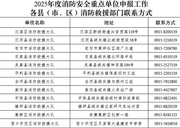 安康市消防救援支隊關于申報2025年度消防安全重點單位的公告