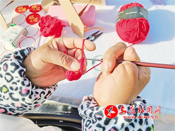 今年春節期間,胡運翠接到了漢濱區文化館的電話,邀請她去金州廣場非遺展示區,展示她的手工編織作品,同她的作品一同列入展示的還有花饃、糖畫、手工竹節人等。她精心準備了許多手工編織品,在金州廣場右側,胡運翠的攤位前圍滿了小朋友,他們被這些栩栩如生的小動物深深吸引,紛紛拉著家長購買。胡運翠一邊熱情地向顧客介紹自己的作品,一邊現場編織,嫻熟的手法引得眾人連連稱贊。