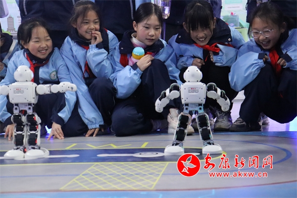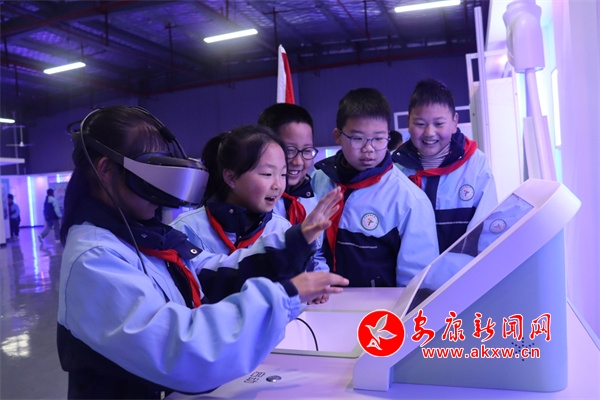 在科技館內,學生們在講解員的引導下,開啟了“沉浸式”科學之旅,近距離接觸機器人、VR、人工智能等前沿科技展品。智能機器人靈巧的舞蹈動作引得孩子們陣陣歡呼;VR體驗區里,學生們戴上設備“穿越”到宇宙星空,感受科技的神奇魅力;學生們還通過參觀“節水之旅 我們在行動”等主題板塊展品,親手操作實驗設備,感受到了科技對生活的深刻影響。走進氣象站,學生們跟隨氣象工作人員,參觀了氣象科普長廊,閱覽二十四節氣對生產生活的影響。在氣象觀測場,近距離觀察風向風速傳感器、天氣現象儀器等設備。