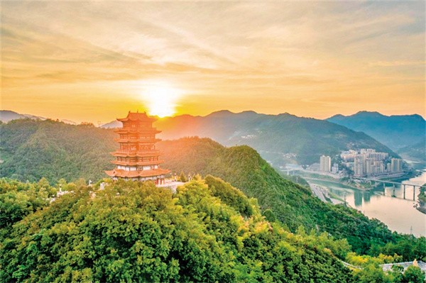 夕陽下的紫陽閣