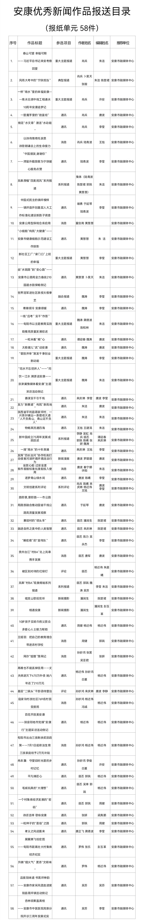 附件:安康優(yōu)秀新聞作品報(bào)送目錄(共計(jì)97件)