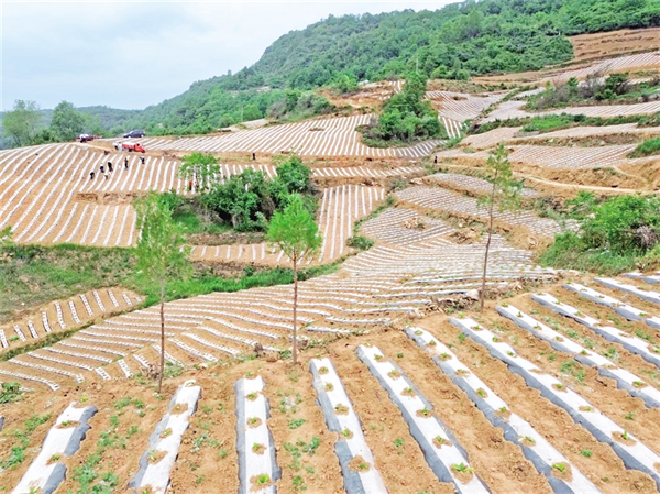 離開錢河梁,走進海棠寺村的梯田里,種煙大戶吳義剛正迎著晨曦帶上20余名村民搶墑移栽。23年的種煙歲月在他臉上刻下溝壑,也沉淀出“致富良經(jīng)”。他瞇著眼睛笑著說:“去年新種的80畝煙田毛收入24萬,今年爭取再多賺點,給孩子換臺好車?!碑斈抗鈸徇^嫩綠的煙苗,手掌摩擦著滴灌管道,吳義剛驀然間變得激動:“雖然今春干旱嚴重,但是政府配發(fā)的抗旱設(shè)備讓移栽成活率大大提升,我們的心血總算沒有白費?!贝逯Р繒泟⒌瞧巾斨胰账闫甬a(chǎn)業(yè)增收賬:“今年450畝煙田已基本栽完,11個大戶帶著小戶干,戶均增收能破萬元。”