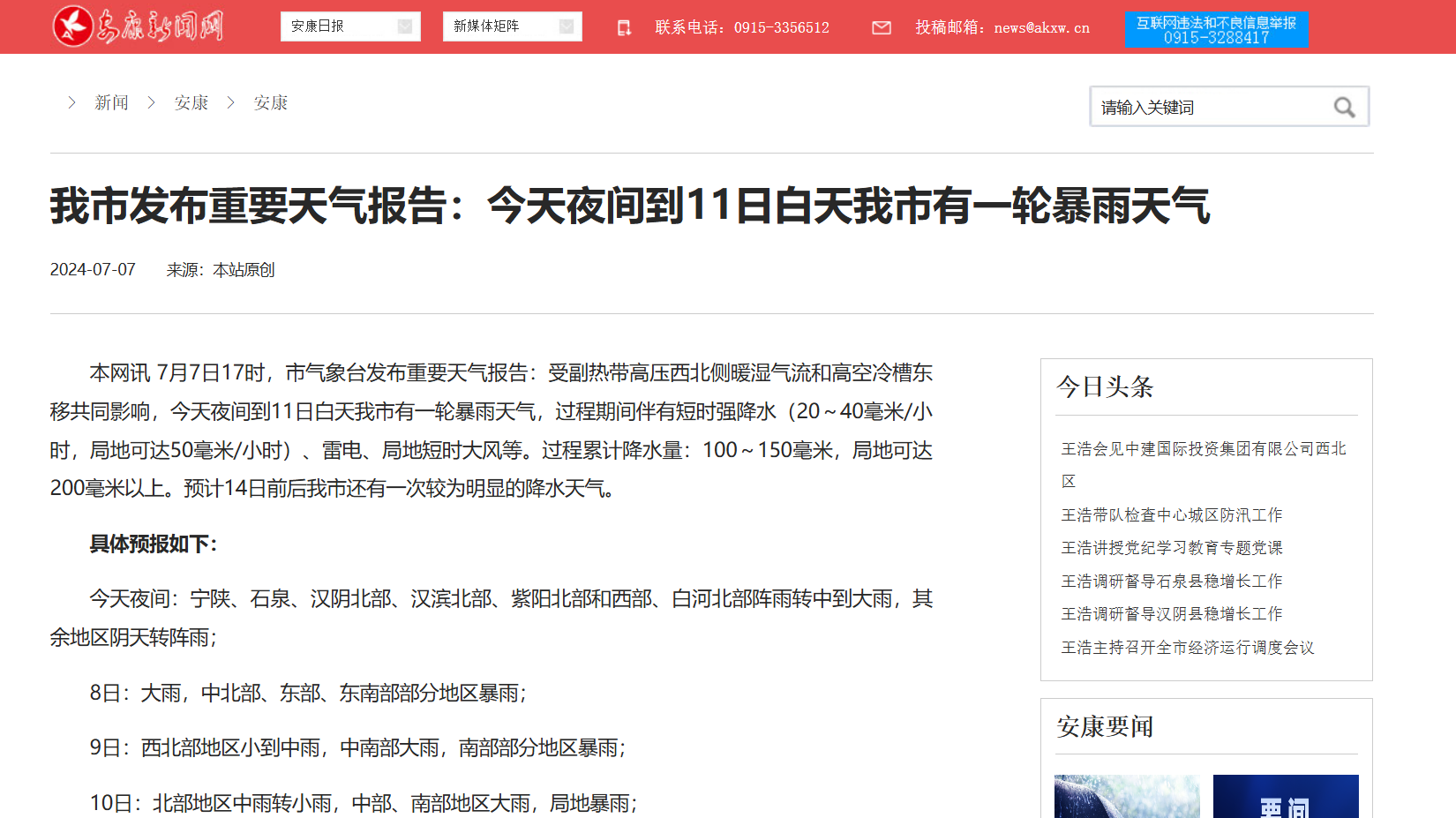 《我市發布重要天氣報告:今天夜間到11日白天我市有一輪暴雨天氣》(2024-07-07發布)