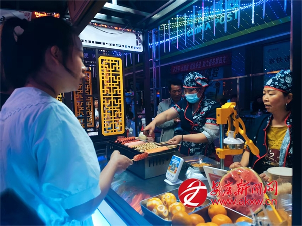 在三星街夜市攤點,攤主們熱情地吆喝聲此起彼伏。烤魚、燒肉等美食在燈光映照下散發著誘人光澤。燒烤店內食客圍桌而坐,享受著美食與歡聲笑語交織的歡樂時光。來自西安的游客楊斌品嘗著美食,贊嘆道:“這里的夜市文化濃郁,地方特色獨特,讓我深切感受到了寧陜人的熱情好客。”