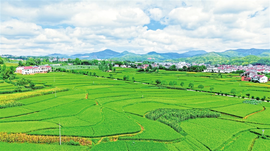 在漢陰縣平梁鎮新河村,連片的綠色稻田與藍天白云相映成趣,勾勒出一幅生機盎然的田園畫卷。王建霞 黃智發 攝