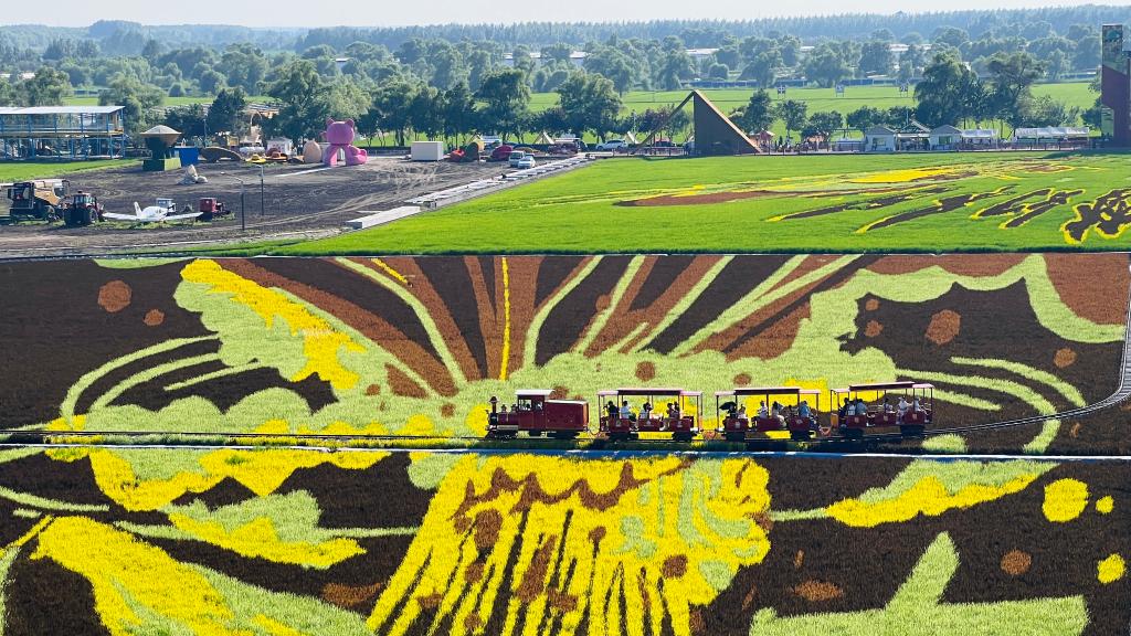 在北大荒集團(tuán)閆家崗農(nóng)場的“藝術(shù)稻田”里,6幅稻田畫在165畝稻田中徐徐展開——冰雪畫卷盡顯百年冰城魅力,四季生態(tài)畫卷演繹著四季浪漫;萌寵卡皮巴拉,傳遞出平靜與治愈的力量;后羿射日、女媧補天、神筆馬良這些經(jīng)典神話在稻田中煥發(fā)新生,與多彩的稻浪共同演繹著中華文明的永恒魅力。100多公里外,北大荒集團(tuán)四方山農(nóng)場的玉米田,青紗帳漸染金黃,工作人員張昊正遙控?zé)o人機,巡航監(jiān)測作物成熟度,科技與傳統(tǒng)在此刻共舞。