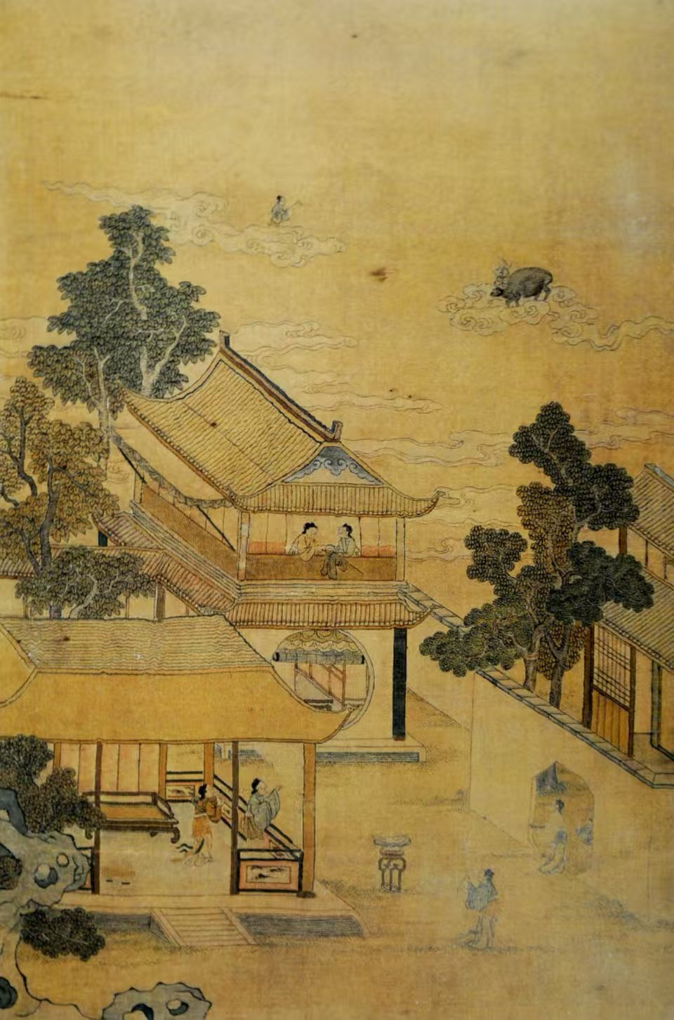 北京故宮博物院收藏的清代緙絲七夕乞巧圖軸,將天上和人間完美融合:上半部分是天上,牛郎織女在祥云圍繞下相會(huì),眼神中充滿了深情和眷戀;下半部分是人間,幾位婦女或憑欄遠(yuǎn)眺,或?qū)掌蚯桑慌珊椭C景象。這幅圖軸以緙絲工藝展現(xiàn),色彩豐富、線條細(xì)膩,不僅展現(xiàn)了古人高超的技藝,也反映了當(dāng)時(shí)社會(huì)對(duì)七夕節(jié)的重視和人民對(duì)美好生活的向往。