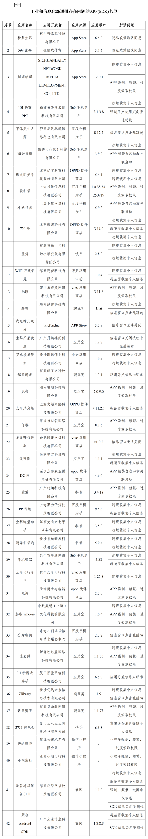 通報:工信部通報!這42款A(yù)PP及SDK存在侵害用戶權(quán)益行為