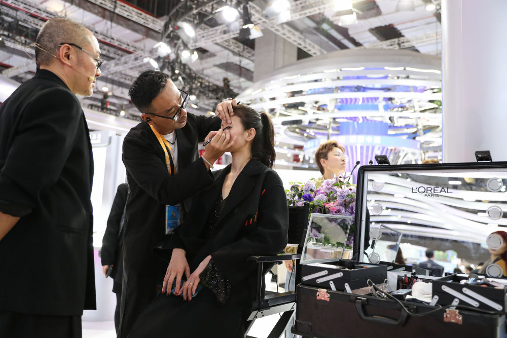 2025年11月7日,觀眾在第八屆進博會消費品展區歐萊雅展臺體驗美妝服務。歐萊雅是進博會八屆“全勤生”。本屆進博會共有170家企業和27家機構成為簽約參展的八年“全勤生”,進博會“全勤生”們的參會熱情印證了中國持續推動高水平對外開放的堅定姿態,也彰顯了中國為各國企業提供共享中國市場寶貴機遇的誠意。