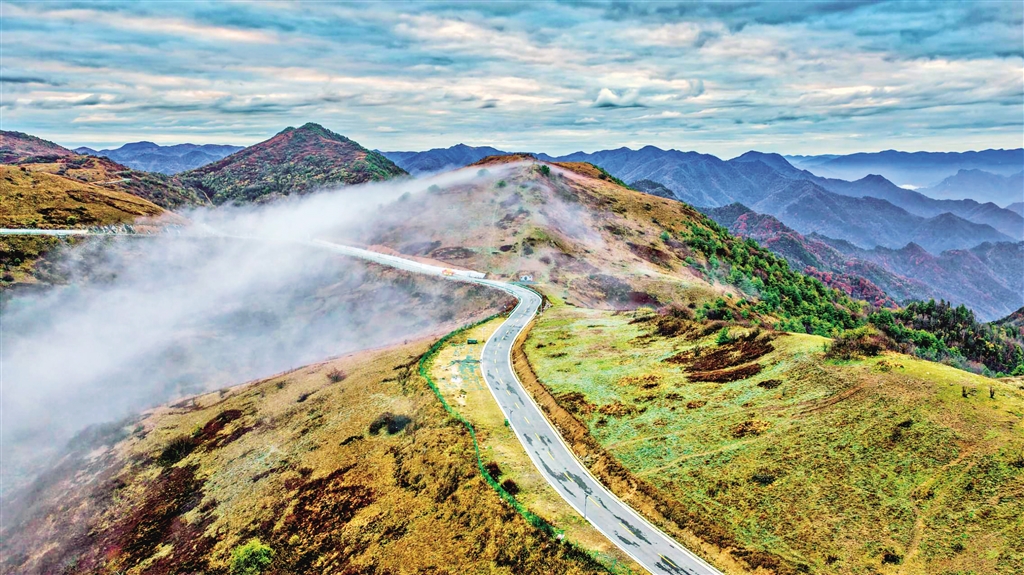 近日,薄霧如紗般漫過平利縣正陽草甸山脊上的盤山道。近年來,當地大力發展旅游交通,方便更多游客前來領略秦嶺巴山的雄渾壯美。皮勇維 攝