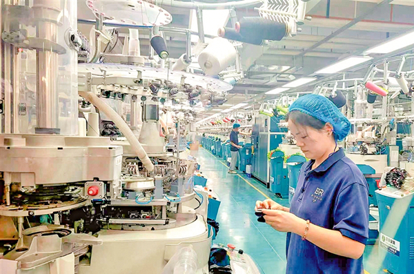 單個工人日均2000雙襪子只是這家企業的正常生產水平。他們以智慧工廠為目標,從原材料到成品主要由自動化設備按照系統指令自行完成,大幅提高生產質效。