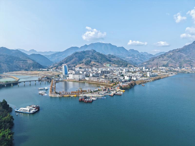 冬日里的石泉縣后柳水鄉,藍天白云、船泊江畔、水如碧玉,共同構成一幅靜謐的山水畫卷。楊勇 攝