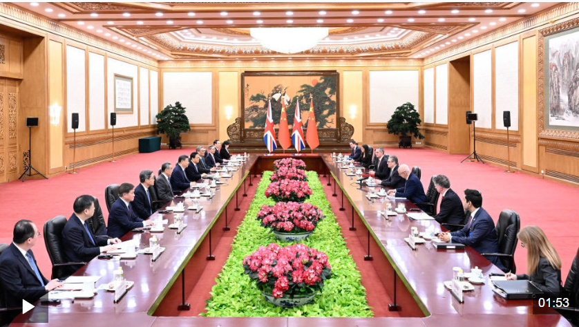 1月29日上午,國家主席習近平在北京人民大會堂會見來華進行正式訪問的英國首相斯塔默。