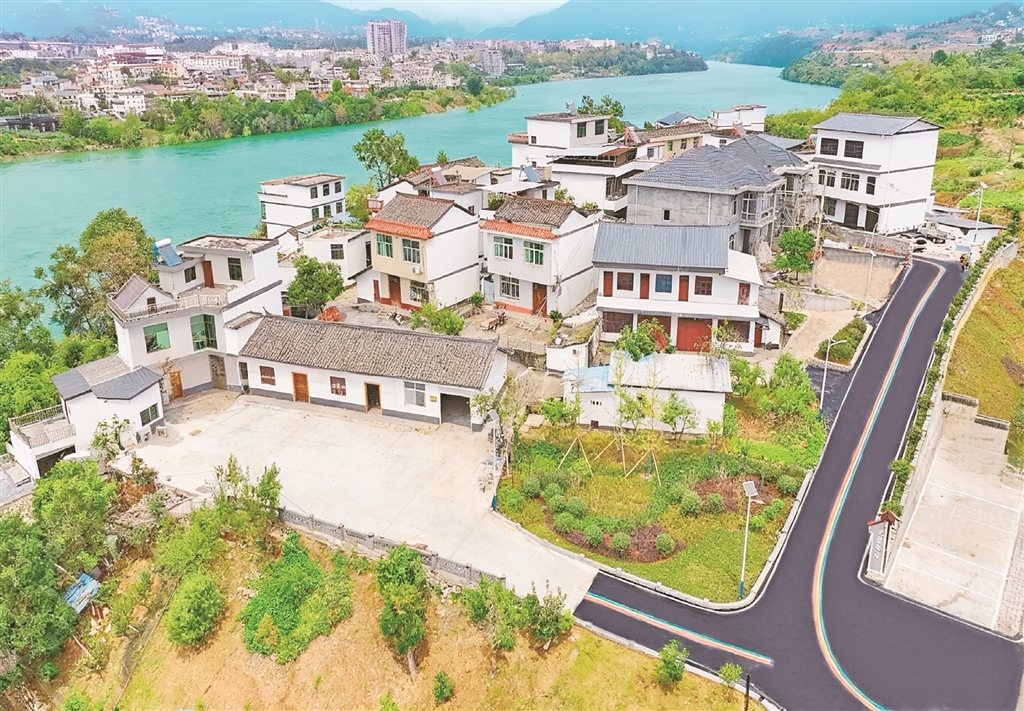 漢濱區張灘鎮立石村王家院子55戶農房完成風貌改造,昔日農舍變為別具特色的“江景院落”。 李靖 攝