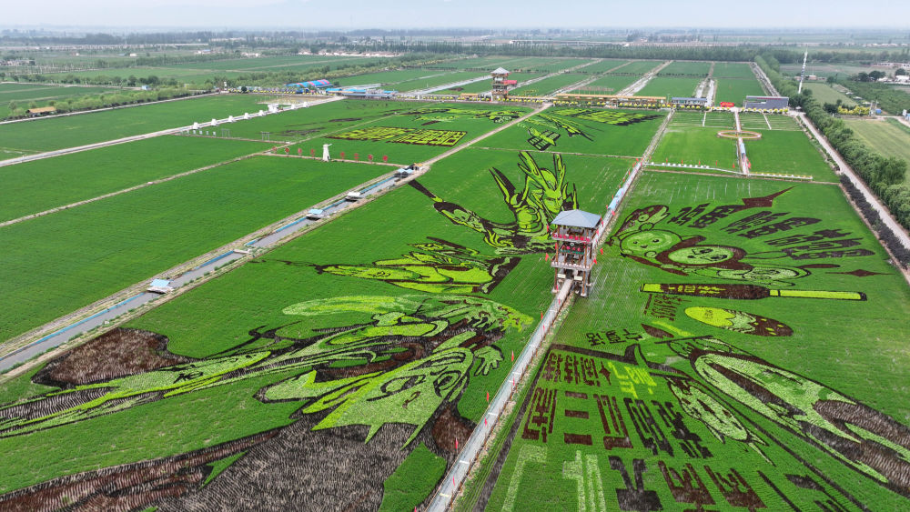 2025年6月18日,稻漁空間鄉村生態觀光園的巨幅稻田畫(無人機照片)。新華社記者王鵬 攝