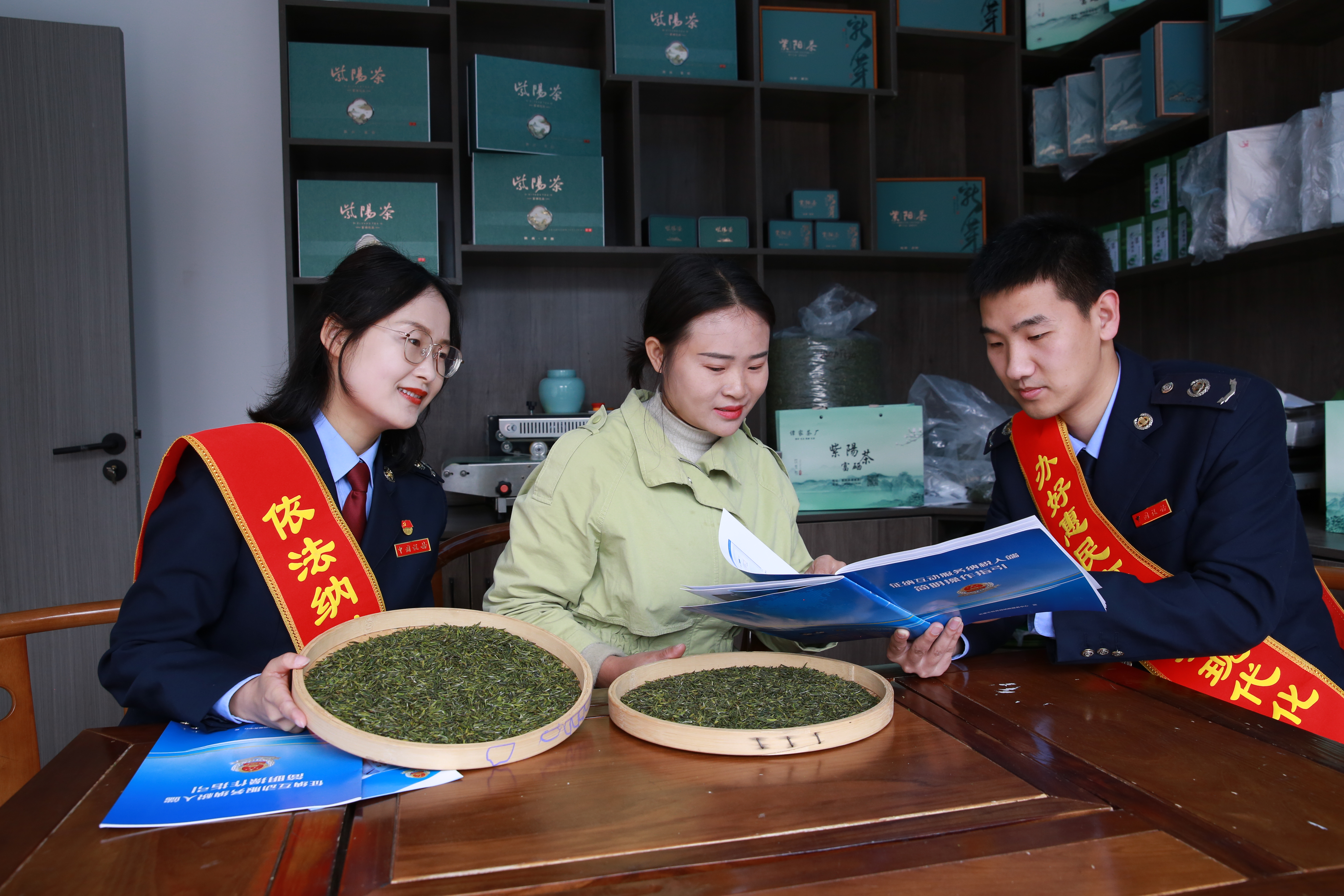 紫陽縣稅務工作人員向茶葉企業講解政策