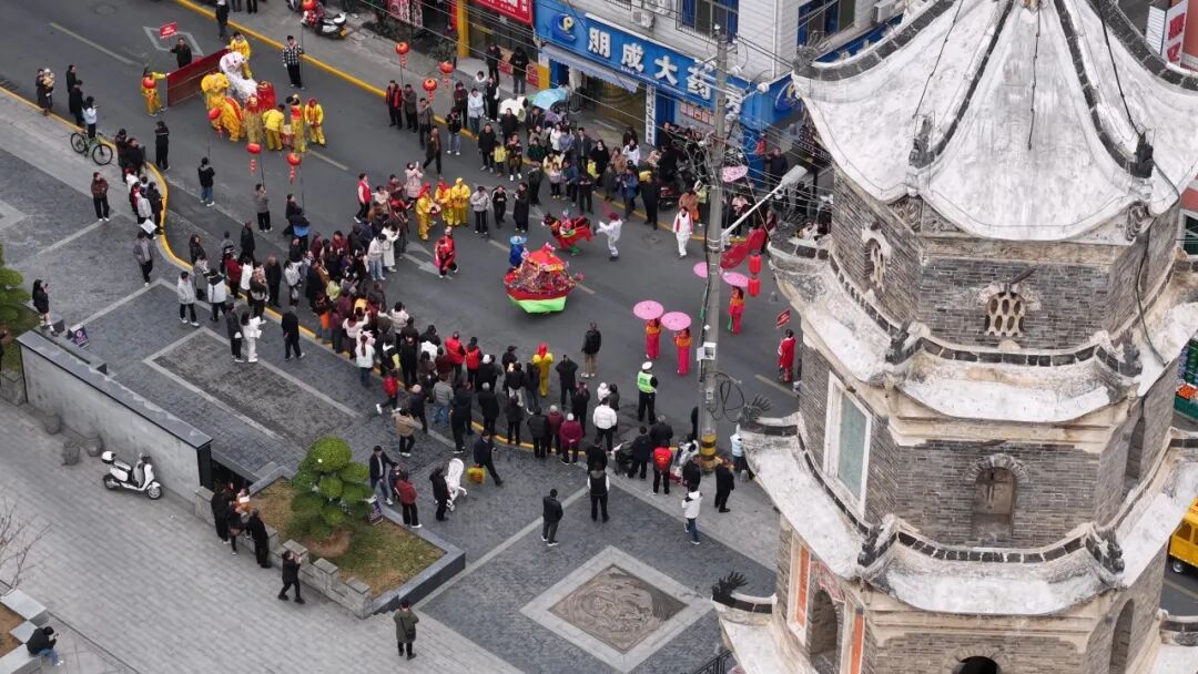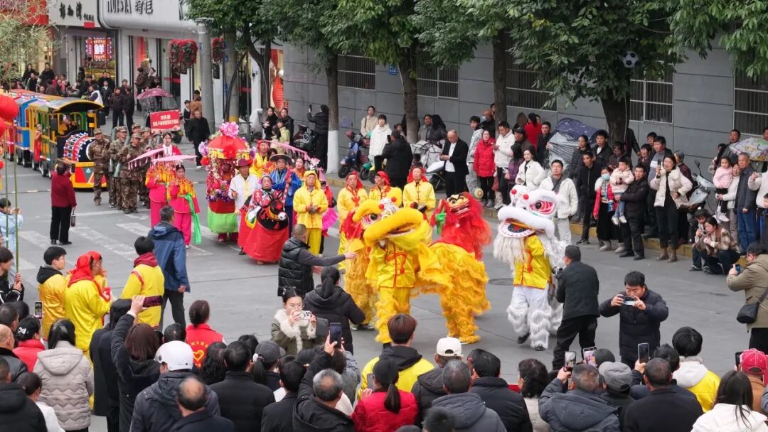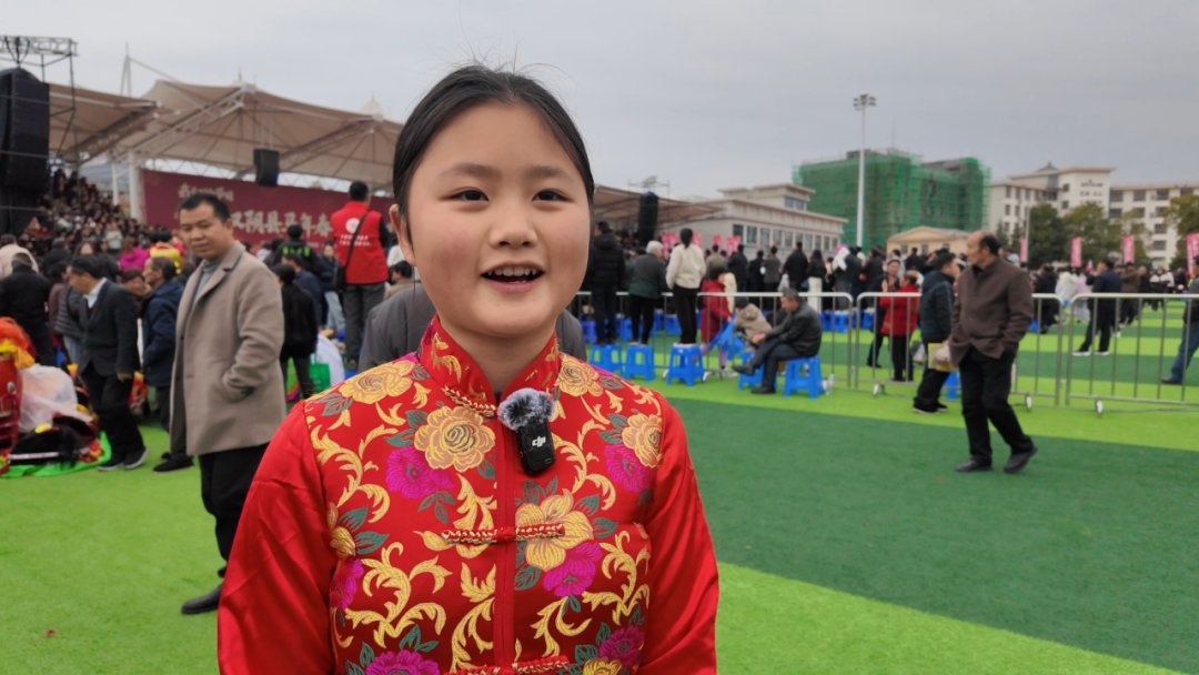 觀眾熊苗苗:很遠(yuǎn)就被鑼鼓喧天的場(chǎng)景給吸引了,看到有很多隊(duì)伍在演出,有年紀(jì)大的叔叔阿姨,也有很小的弟弟妹妹。這個(gè)場(chǎng)景真的非常熱鬧,讓人看著很開(kāi)心,年味十足。